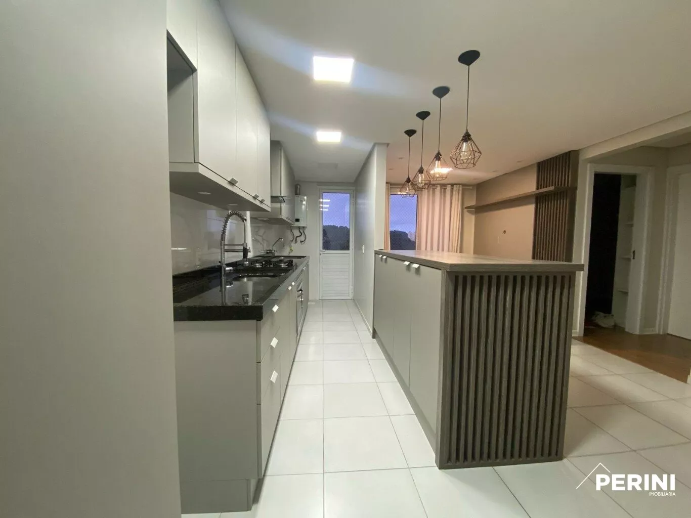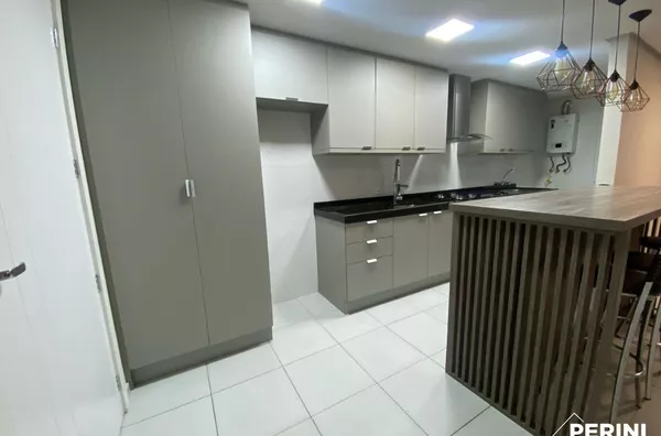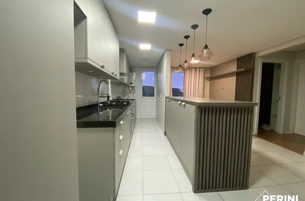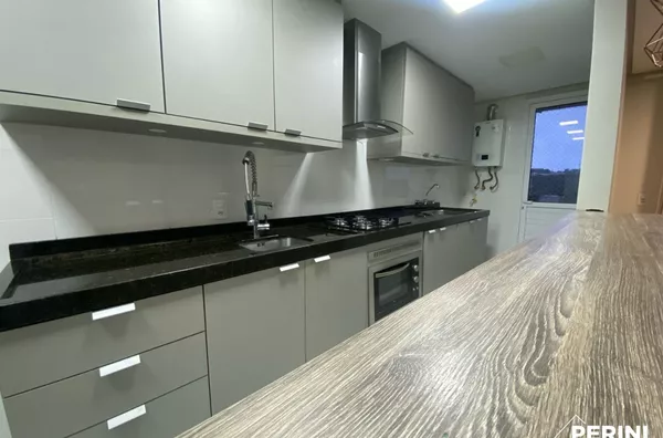 Apartamento semi-mobiliado com 2 dormitórios, sala estar/jantar/cozinha integrados, sala com sacada e rede protetora, lavanderia com porta para sacada, vaga de garagem dupla, apartamento de fundos, frente norte