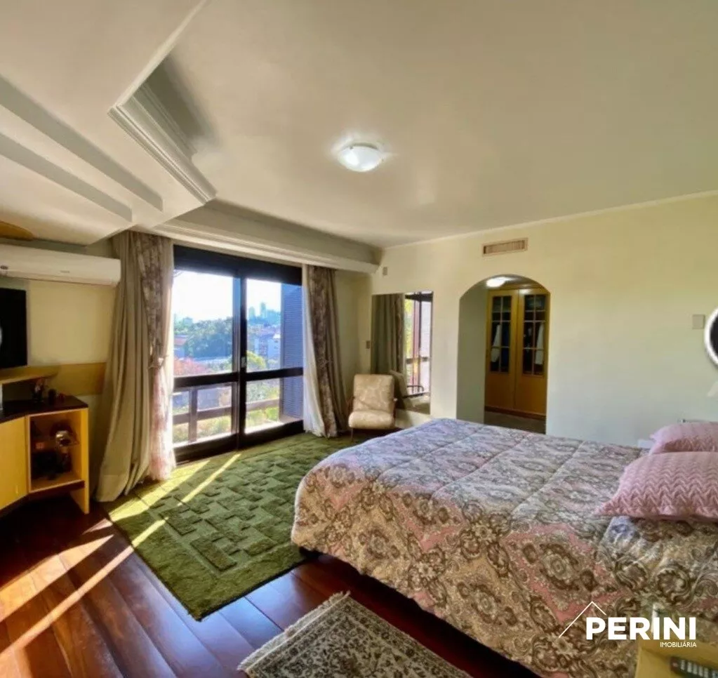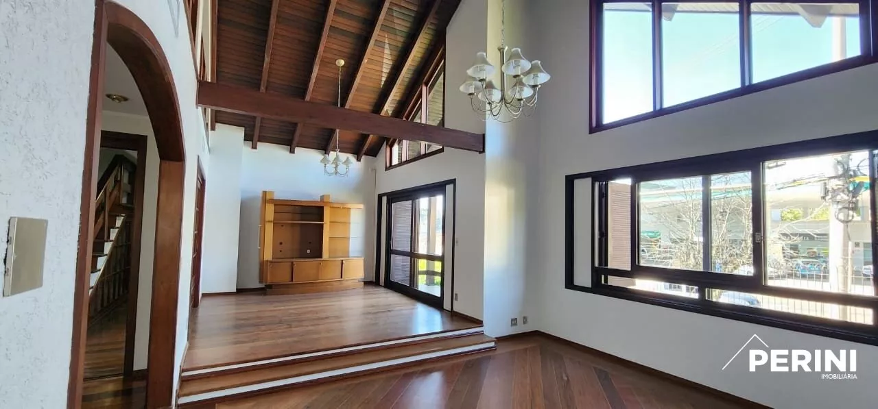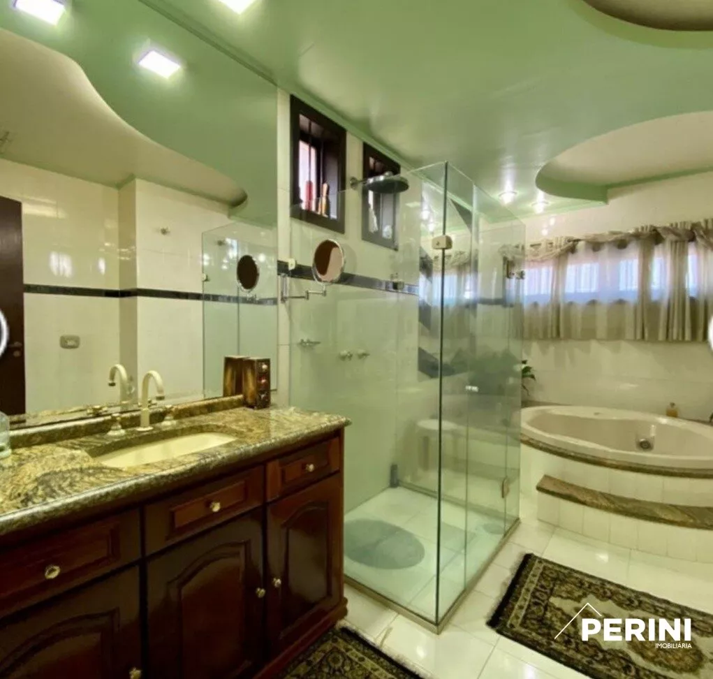 RESIDÊNCIA em terreno nobre de esquina, 406 m² de área construída, com 3 pisos, com 4 dormitórios sendo uma suíte master com sacada, sala de estar, sala de jantar, 2 cozinhas, 4 banheiros, churrasqueira, lareira, piso taboão, rebaixe em gesso, paredes duplas, calefação, garagem para 5 carros ou mais, mezanino, piscina aquecida, jardim, gramado, excelente posição solar.