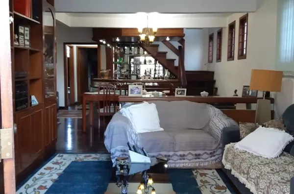CASA DE ESQUINA: dois pavimentos sendo: 1° pavimento: sala jantar e estar integrados, cozinha, lavanderia, banheiro, adega e dependência de empregada.