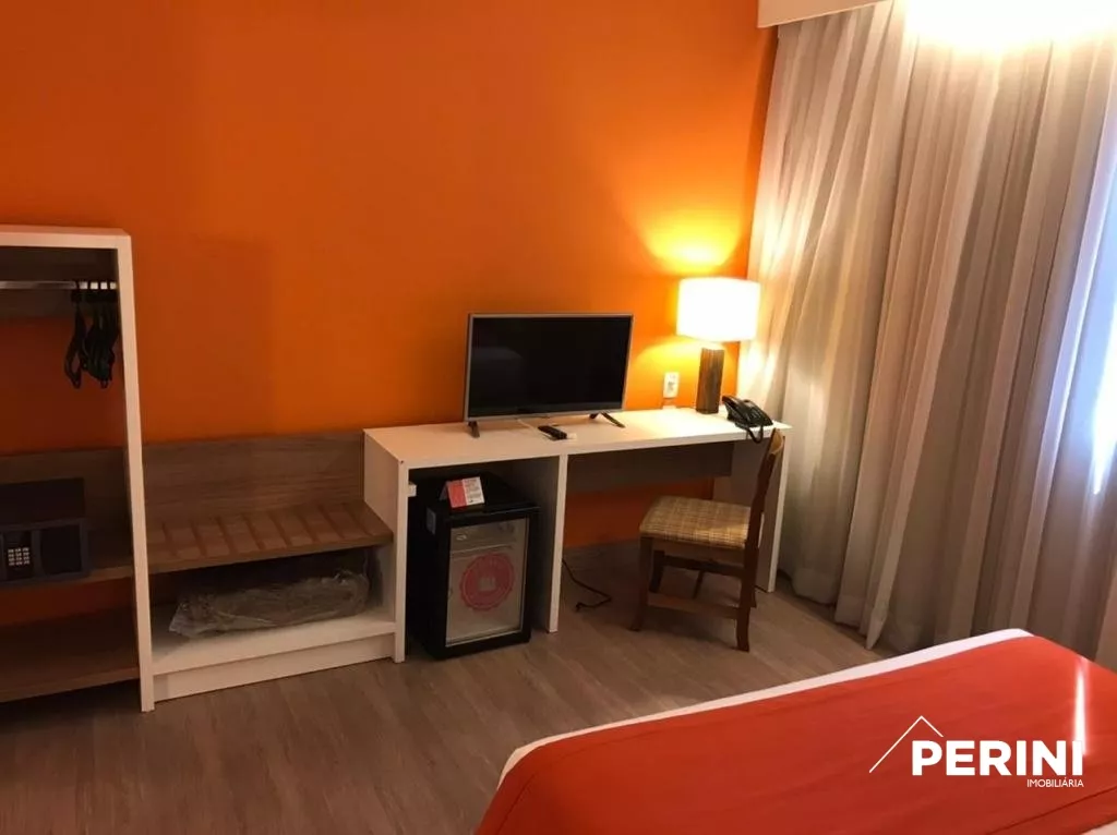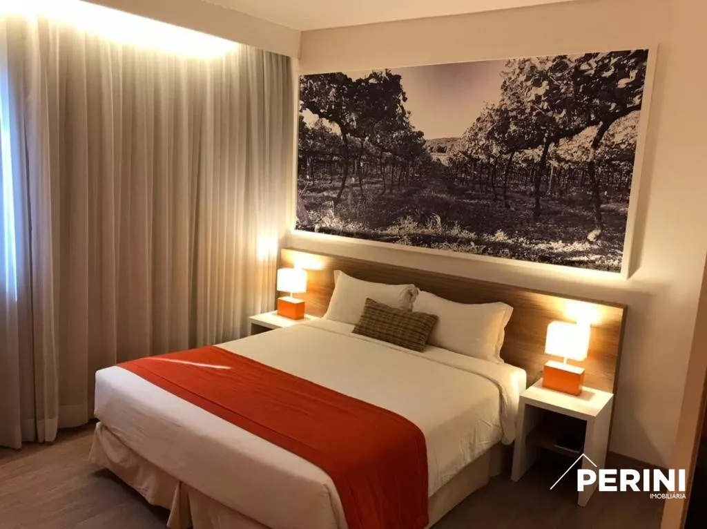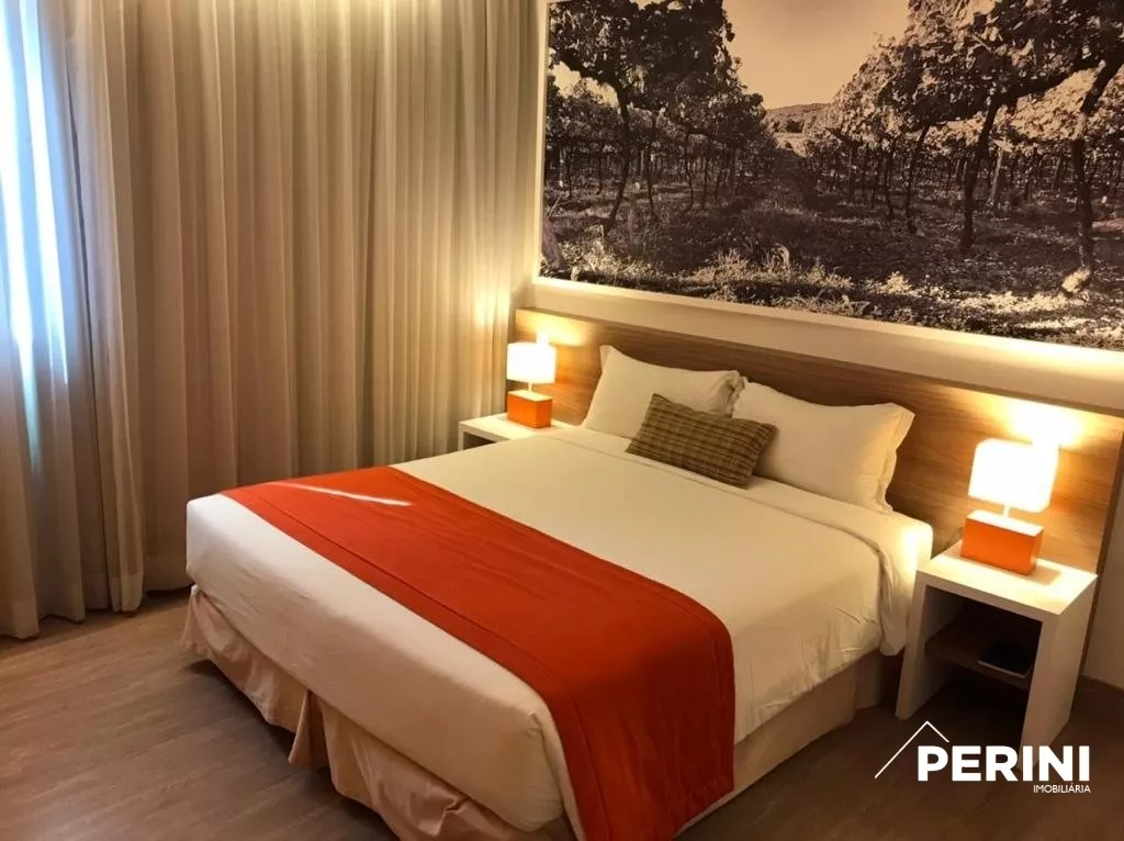 Apartamento 1 dormitório, 1 banheiro com frigobar, balcão, ar condicionado.