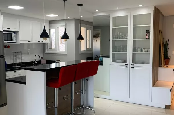 Apartamento mobiliado, 3 dormitórios sendo 1 suíte, sala com sacada, banheiro social, vaga dupla de garagem.