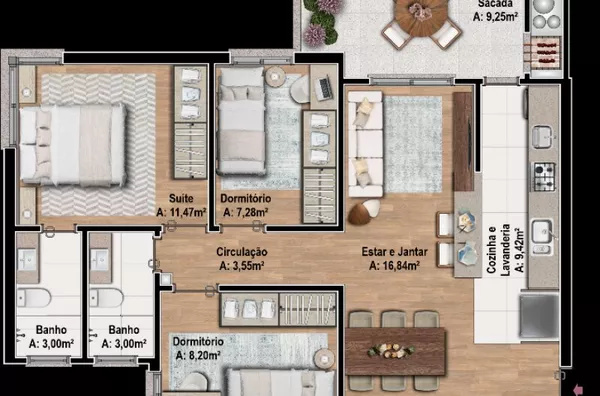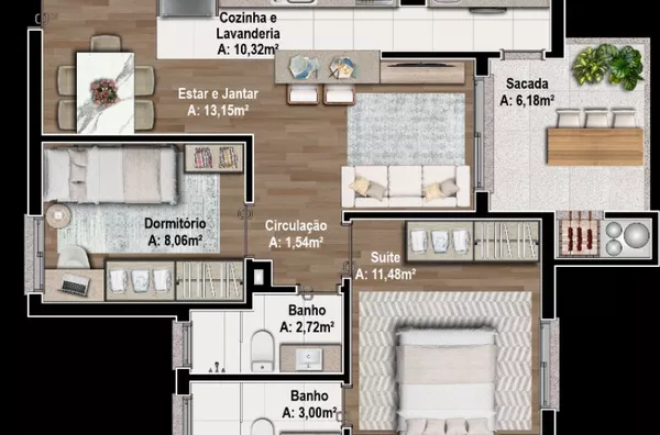 APARTAMENTOS 2 e 3 dormitórios com suíte, sacada, 1 ou 2 vagas de garagem, valores a partir de R$ 428.000,00, data de entrega primeiro semestre de 2025. Fotos apartamento decorado, mobília não inclusa no valor.