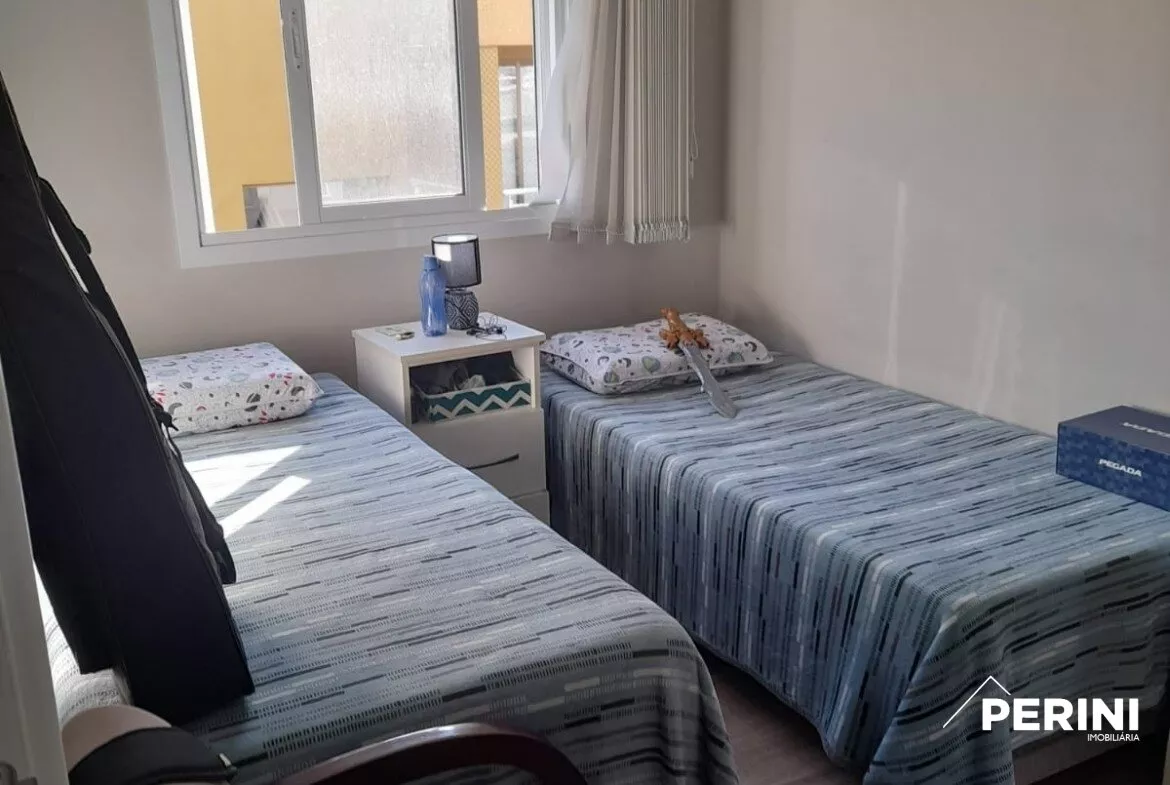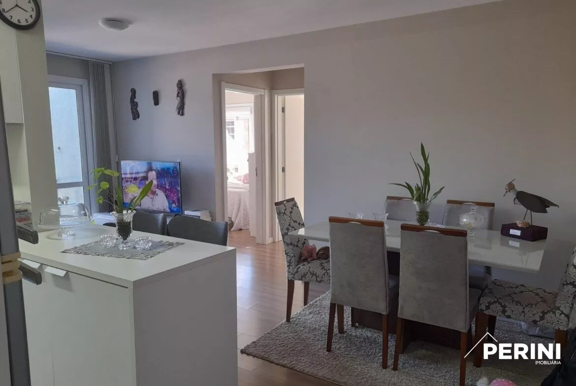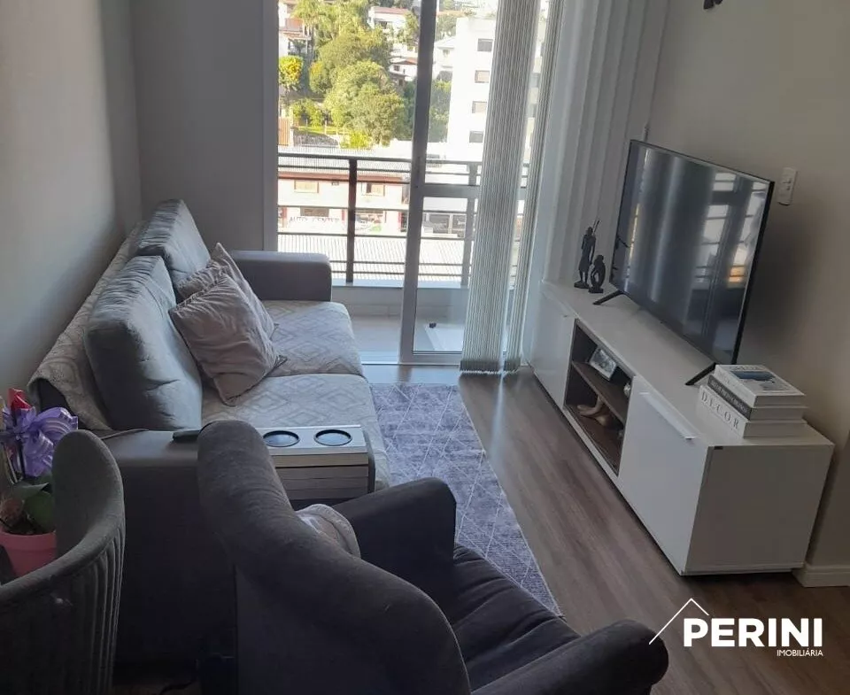 Apartamento semi mobiliado, sala e cozinha integradas com móveis planejados, 2 dormitórios com roupeiros, banheiro social com box de vidro, lavanderia com armário e tanque, sacada com churrasqueira, elevador, porteiro eletrônico, 1 vaga de garagem