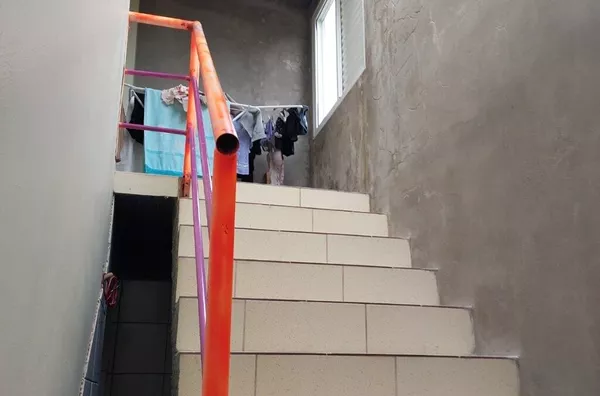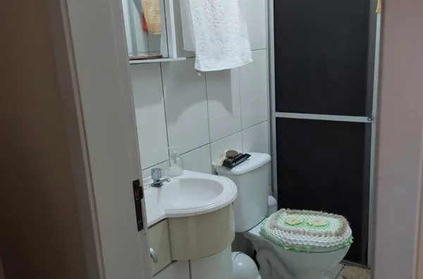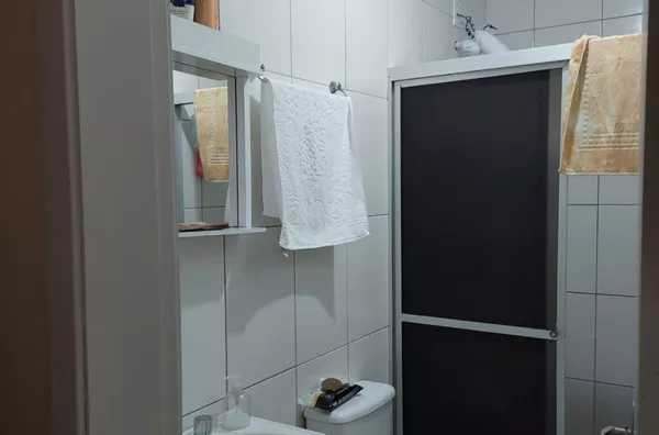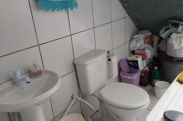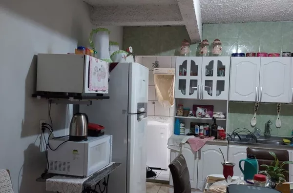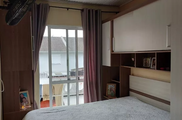sobrado 2 dormitorios, sala/cozinha conjugadas, 2 banheiros, 2 vagas de garagem, 1 coberta e outra em frente.