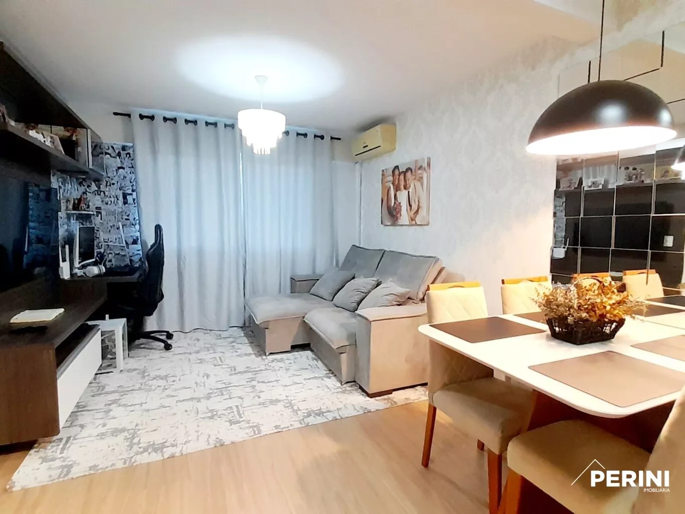 Apartamento semi mobiliado, 2 dormitorios, banheiro social, área de serviço separada, sala estar, sala jantar, cozinha com bancada, água quente, ar condicionado, posiçao solar Norte/leste, moveis sob medida, apartamento bem localizado, proximo a comercios, aceita permuta por terreno ou casa na regiao.