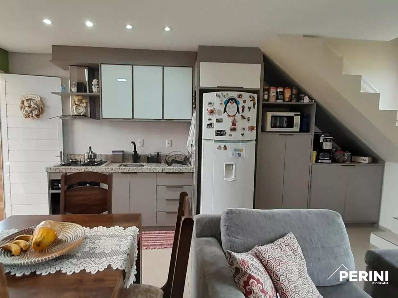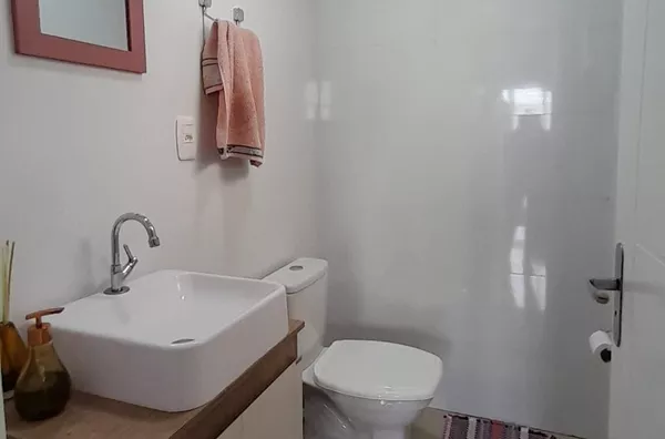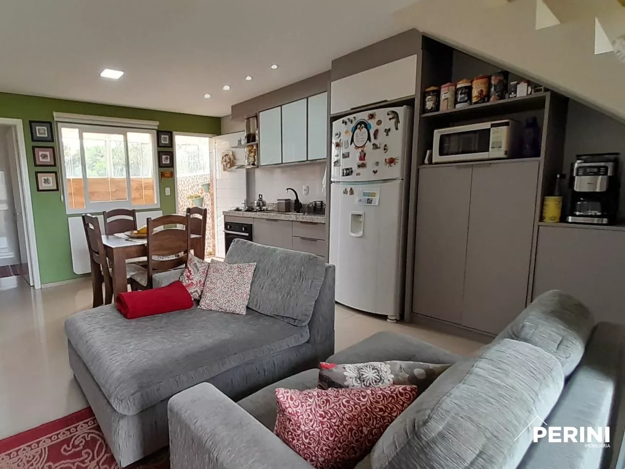 Sobrado Triplex semimobiliado, 2 dormitorios, banheiro social, lavabo, sala estar/jantar e cozinha integrados, sacada fechada com sistema reiki, churrasqueira, 2 vagas de garagem, piso laminado e porcelanato, rebaixe em gesso, espera para água quente, cameras de segurança e alarme, ficam os móveis fixos, rack de TV, sofás, cooktop, forno, coifa, ar condicionado, persianas retrateis de teto, roupero, entrada coletiva, apaenas 4 sobrados, aceita apartamneto na negociação.