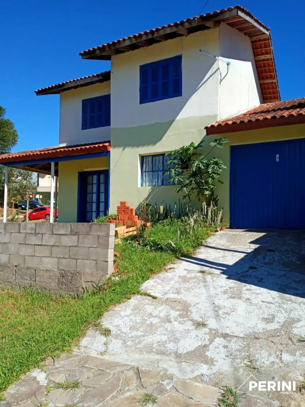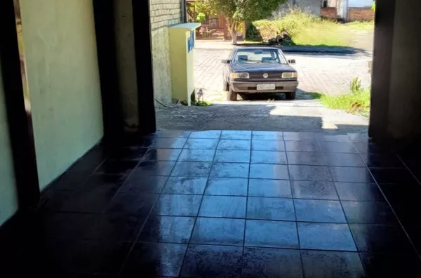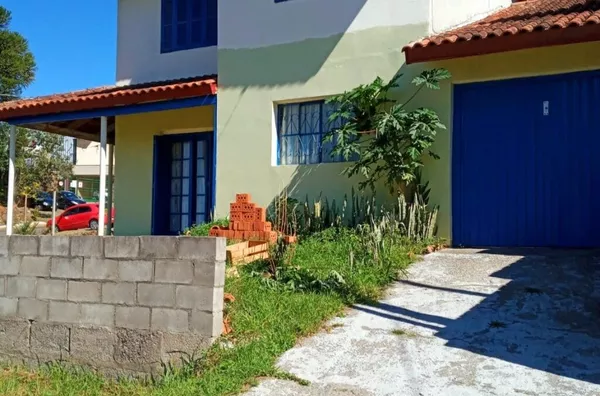 Casa em terreno de esquina, em lavenaria, parte superior 2 dormitorios, sala, banheiro, piso inferior, 1 dormitorio, sala estar e jantar, cozinha, banheiro, área de serviço, churrasqueira, 2 vagas de garagem, amplo pátio, paredes duplas, água quente, gás encanado, frente Leste/Oeste, aceita imovel em caxias ou litoral.