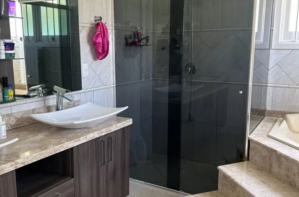 Casa 2 pavimentos sendo no primeiro garagem, cozinha, banheiro, churrasqueira, e no segundo sala, cozinha, dormitorios, imovel com ar condicionado, água quente, calefação, pátio com piscina, canil, pintura nova. Aceita casa, apartamento ou terreno no negocio.