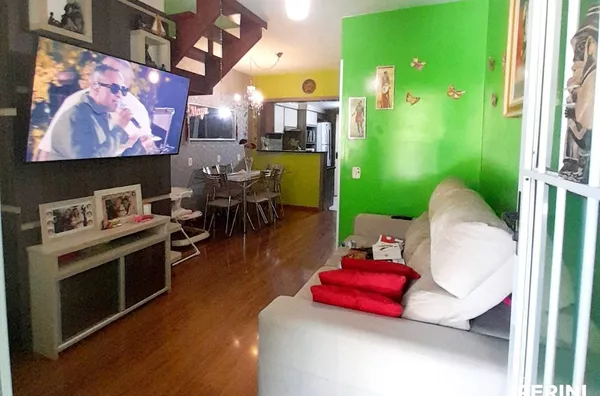 Sobrado entrada individual, semimobiliado, 2 dormitorios, sala estar e jantar, cozinha, área de serviço separada, churrasqueira, terraço, uma vaga de garagem